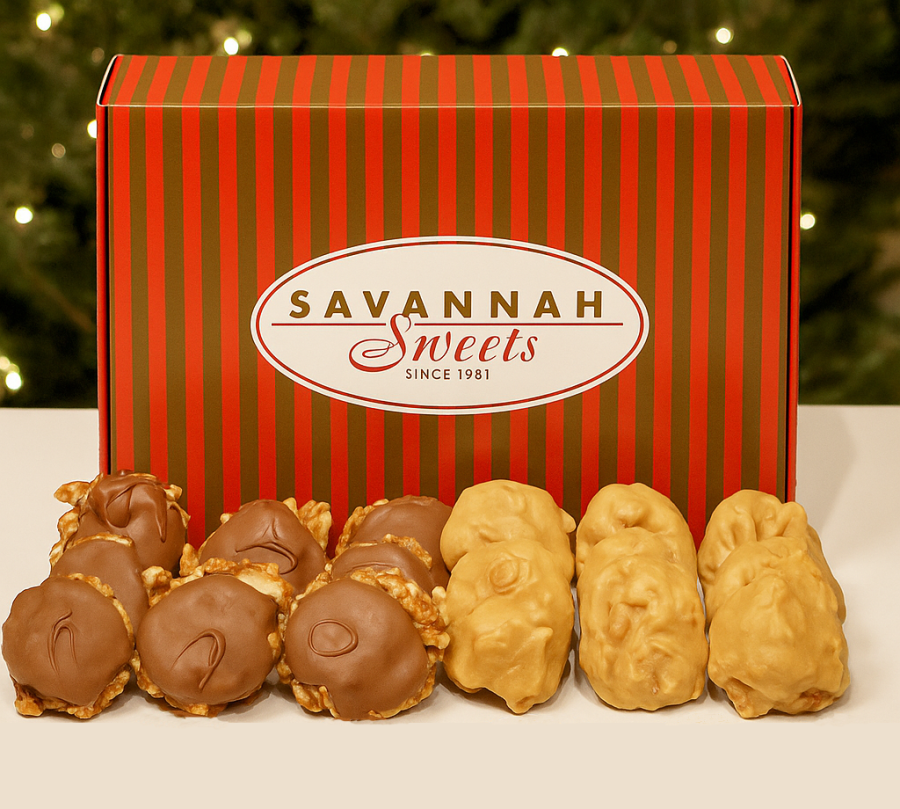 12 2oz Traditional Pralines, 12 2oz Milk Chocolate Pecan Paws
